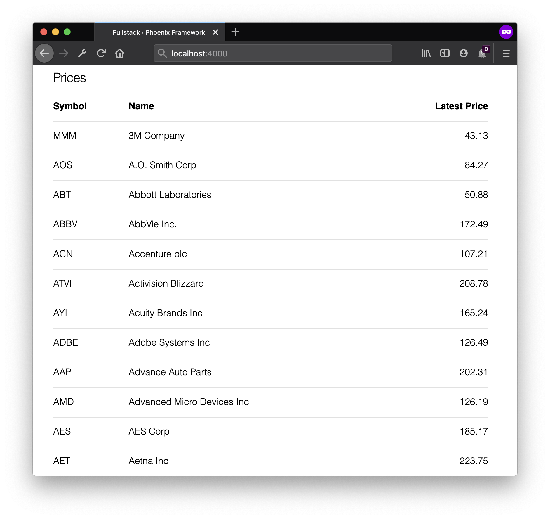 Our task is to convert a traditional controller-driven Phoenix app to one that uses Phoenix LiveView. The application we are working on is a price tracker for 500 stocks traded on the Nasdaq exchange. In the background, there is a process that fetches data from whatever pricing source the application is connected to. Currently, our users have to refresh their browser to get see this new information. We’d like to update the application to use Phoenix LiveView to push the new information to the user when it is received.